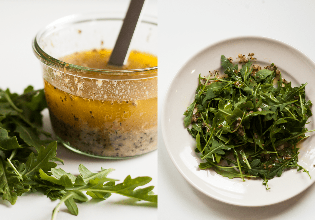 This is the vinaigrette I keep in my refrigerator at all times. It is delicious with arugula and parmesan, tomatoes and green beans, or romaine lettuce and toasted pine nuts. This vinaigrette is incredibly versatile; you can substitute red wine vinegar for the white wine vinegar, fresh thyme for the dry oregano, or add crumbled feta.
