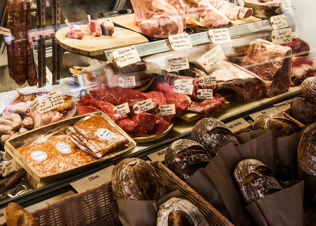 I love the whole chickens available plain or marinated with The Publican blend of spices as well as the vast selection of pork, beef, and lamb from local, organic farms. The butchers are friendly and knowledgable. A gourmet selection of olive oils, vinegars, spices, and salts are available in addition to farm fresh eggs and milk.