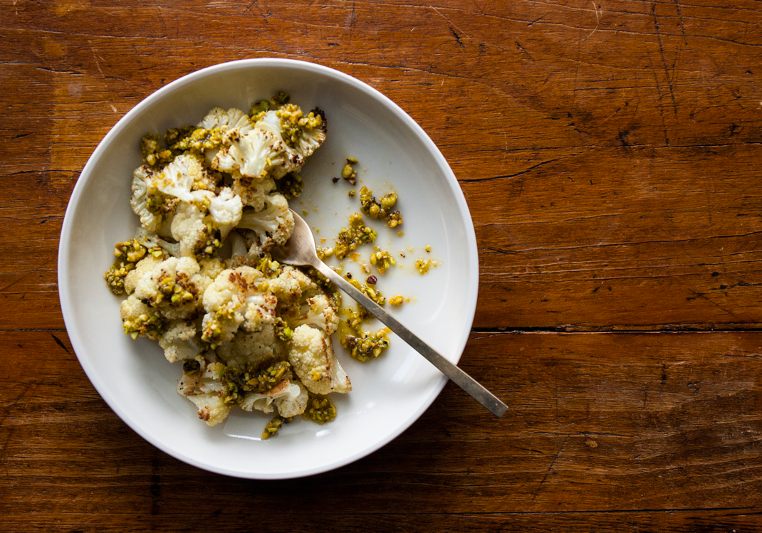 Last week, I found an unglazed ceramic Pigeon Toe Mod Mortar + Pestle at a modern home and lifestyle shop called Gather Home + Lifestyle, and I could not resist purchasing it. When I arrived home with my new treasure, I decided to use the mortar and pestle to create a pistachio aillade. The pistachio aillade should be made with the best and freshest pistachios and the highest quality extra-virgin olive oil available. I love to serve pistachio aillade with roasted cauliflower, grilled asparagus, or sautéed green beans; it is also delicious with grilled or roasted meat or as an accompaniment to cheese.