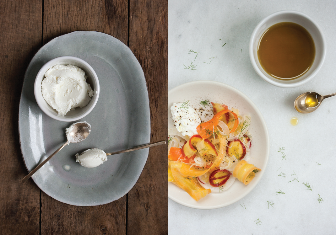 Prairie Fruits Farm and Creamery Fresh Goat Cheese | Shaved Vegetable Salad with Fresh Goat Cheese and Vinaigrette